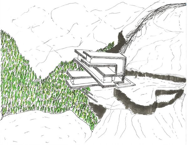 The initial sketch of the concept. I wanted to integrate the feeling of a plane taking off into the home's design.