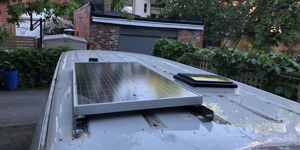 A 100W solar panel was fixed to the roof of the van in order to provide charge to a 110V/500W electric generator.