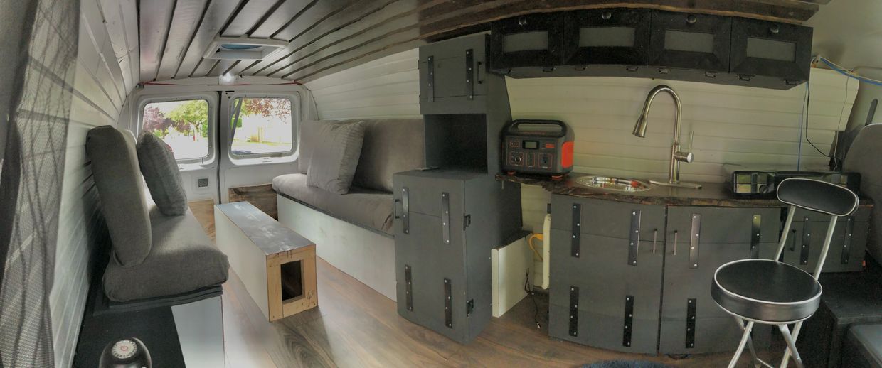 Faced with the need to get from Montreal to Vancouver for school, I decided to convert a cargo van into a camper and drive there. I had no relevant experience to a project of this scale, so I spent weeks researching, designing, and meticulously planning every detail.
